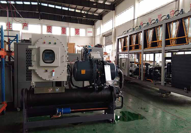 對化工生產(chǎn)過程中會產(chǎn)生易燃易爆氣體廠家,要求使用的化工設(shè)備專用制冷機組有防爆功能,康士捷針對這一要求,研究開發(fā)了防爆型化工設(shè)備專用制冷機組,在眾多化工廠得到應(yīng)用。