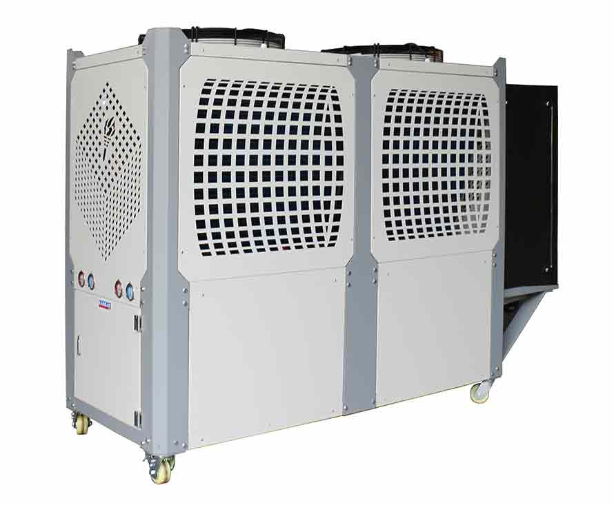 1、風(fēng)冷式吹塑配套制冷機組,通過風(fēng)扇以空氣為冷凝方式的控溫設(shè)備,有箱式和螺桿式;